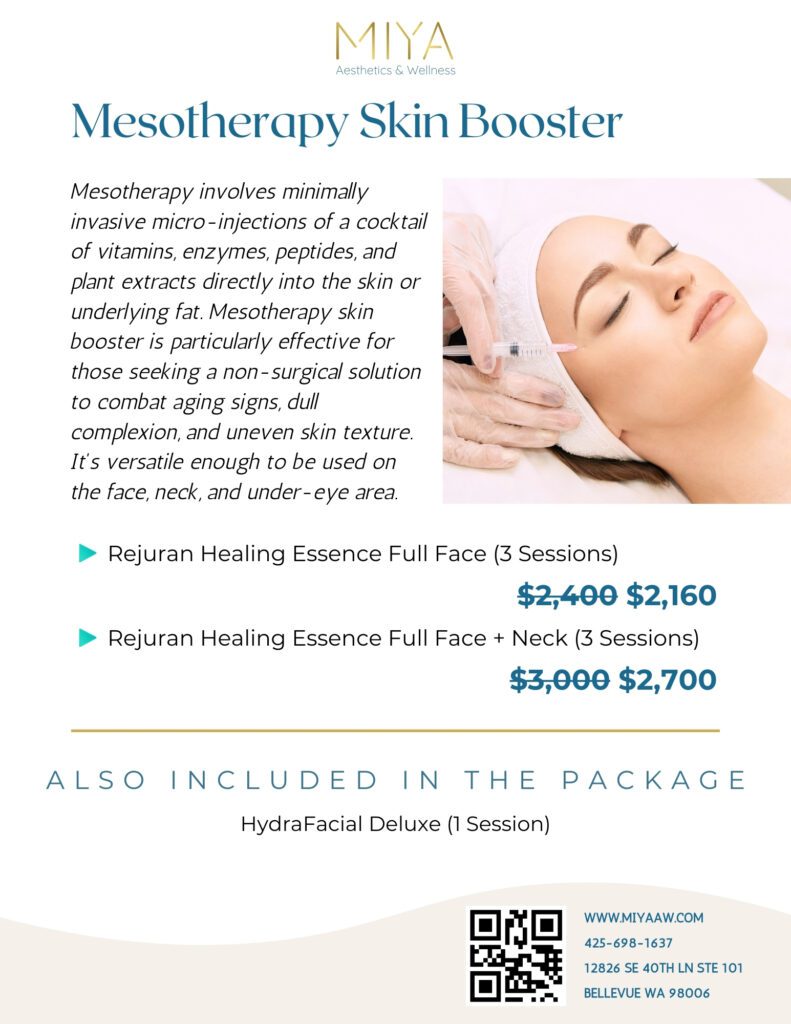 Mesotherapy is a minimally invasive procedure that involves the injection of a customized blend of vitamins, enzymes, hormones, and plant extracts into the mesodermal layer of the skin to rejuvenate, tighten, and reduce fat and cellulite.
